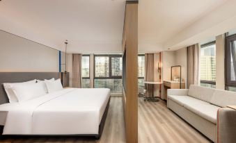 There are 143 stylish guest rooms, including 13 suites, the rooms are equipped with highspeed Internet, minifridge, comfortable bedding and screen TV. The hotel provides sumptuous Chinese and Western buffet breakfast, delivery robots, self service laundry, a gym, and 1 standard meeting room, providing perfect services for your different needs.
