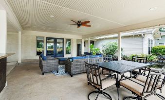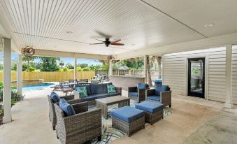The outdoor space is EXCELLENT and primed for entertainment. Enjoy the private pool, pool table room, and outside area furnished with outdoor furniture and pool chairs. A gas grill is available for your use during your stay to enhance your outdoor experience at The Salty Oyster!
