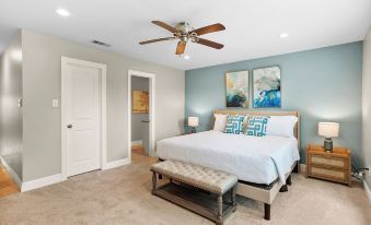 - Bedroom #2: King bed, nightstands, closet, Flat-screen Smart TV, and Full bathroom