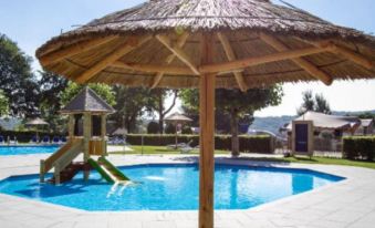 Holiday development "Europarcs Gulperberg". On the outskirts, 3 km from the centre of Gulpen, on a slope, in the countryside. For shared use: swimming pool (seasonal availability: 01.May. - 31.Aug.). Children's pool, children's playground. In the complex: reception, restaurant, WiFi, shopping facilities, laundry, washing machine (extra), tumble dryer (for shared use, extra), bicycle rental. Central parking spaces. Supermarket 3 km, restaurant 3 km, bakery 3 km, 20 minute walk to the centre, bus stop "Gulpen Brouwerij" 3 km, railway station "Valkenburg" 12 km. Nearby attractions: Valkenburg 13 km, Aken 17 km, Maastricht 18 km, Gaiazoo Kerkrade 19 km, Drielandenpunt (NL/BE/DE) 15 km. The owner does not accept any youth groups. Please note: the photograph shows a typical example. Additional accommodations can be booked. All houses/apartments are individually designed/furnished. "Panorama Cottage 4", 3-room bungalow on the ground floor. Comfortable furnishings: entrance hall. Living/dining room with flat screen. Exit to the veranda. 1 double bedroom with 2 beds. 1 double bedroom with 1 double bed. Open kitchen (dishwasher, kettle, microwave, electric coffee machine) with bar, dining table. Shower/WC. Heating. Terrace. Terrace furniture. View of the countryside. Facilities: Internet (WiFi, free). Parking (1 car) at the house. Please note: non-smoking house.