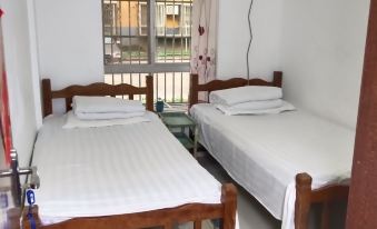 房間滿意,老闆人挺好,負責開三輪車接送我們到火車站。房間內有一個大床,一個小床,大床是可以睡兩個人的。