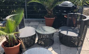 Praktische und vernünftig ausgestattete Fewo, die uns als Ausgangspunkt für die Erkundung Bambergs diente.Mit dem Fahrrad ist man in 20 Minuten im Zentrum von Bamberg.Versorgung in Hallstadt 5 Fahrradminuten (Rewe, Aldi, etc.) entfernt.Eichhorn Brauerei mit Biergarten in Dörfleins ebenfalls in wenigen Minuten mit denm Rad erreichbar. Auto kann also nach Ankunft stehen gelassen werden.Alles rund.