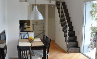 Modern, friendly apartment, approx. 40 sqm, living room with sofa bed (1.20 x 2.00), satellite TV, dining table for 4 people and large kitchenette (all with wooden floor), gallery with bed (120 x 180), separate Bedroom with two beds (1.00 x 2.00), bathroom with shower, toilet and hairdryer, sunny terrace approx. 35 sqm, 30 meters from the Main river and cycle path, bus connection approx. 5 minutes on foot, storage space for bicycles and boats , Parking space in front of the door, shopping facilities approx. 5 minutes by car in the Bamberg port area, 3 km to the A 70 and A 73, approx. 20 minutes by bike to the city center of Bamberg.About pets:No pets allowed.About checkOut:Check out before 11:00 AM.About children:Children allowed: ages 0-17.About checkIn:Check in after 4:00 PM.About smoking:Smoking is not permitted.About events:No events allowed.