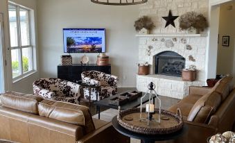 Starry Creek Ranch was just perfect for a long holiday weekend with family. The house is newer, spacious, comfortable and a perfect layout for multiple families or groups staying together (two master suites, kids bedrooms, multiple bathrooms). The house itself far exceeded our expectations. The pool was a hit with the kids and provided relaxation for everyone. The views are spectacular and sunset is beautiful. The stars at night are also stunning. My husband enjoyed fishing in the pond every morning and evening. We also loved the adventurous hike to find the Indian cavern — one of the highlights of our stay! This property is unique and the host has thought of every detail to make the stay comfortable and memorable— we will be back!