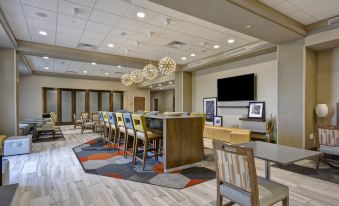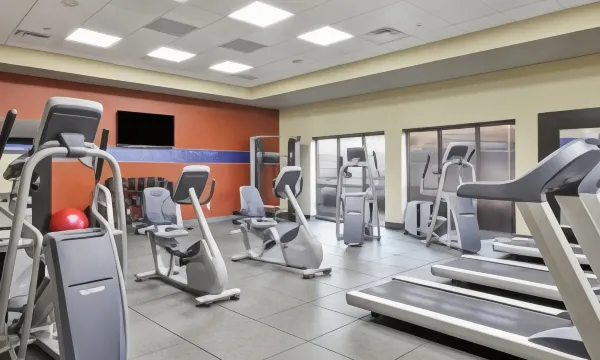 I stayed here at the recommendation of a colleague while in town for work. I am generally OK with Hampton Inn properties, but this location was pretty average. My room was a good size, but I had a few issues with it: - I found the lighting setup to be kind of weird. There was no centralized lighting - it was just a collection of lamps that lit up very small portions of the room. - I appreciate having a desk, which most hotels seem to have these days, but they often miss the mark on the seating…that was definitely the case with this room. The breakfast buffet had a pretty limited selection. One bright spot was the gym. It was very spacious and had a good range of equipment, although the 20 lb dumbbells were missing and there was no way to silence the TVs.