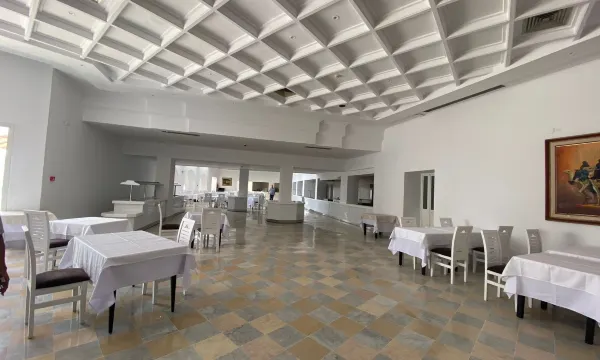The staff were the highlight of my stay. Most of them were very friendly and helpful. The main pool appeared clean and not too busy but the water slides and access stairs were dirty and unpleasant. The beach is just a short walk from the hotel and it’s truly beautiful. The food, as many other guests of the hotel have already mentioned, is repetitive, with very limited choice. The room was not 4 star, at most two since there were no basic amenities like a kettle, iron or a clean blanket. The room looked tired and in need of renovation. The security guards did not let my friends, who were staying at a different hotel, to visit me which was disappointing.