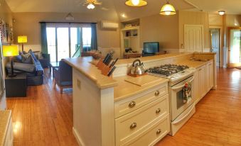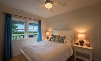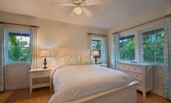This beachfront home on Hanalei Bay offers 3 bedrooms, 2 baths, and air conditioning throughout. Just steps from the sand and minutes from Hanalei town, it’s the perfect beachfront Hanalei location with views of Bali Hai. The Master Suite features a king bed and en suite bath, while two guest rooms with queen beds with a shared bath. The open kitchen, living, and dining areas flow seamlessly to a spacious beachside lanai, perfect for relaxing in paradise.