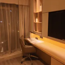 The environment is great. The cleaning staff, security, and front desk are available 24/7. Communication was seamless. The furniture, tableware, and kitchenware were all very convenient. The room and bathroom were also spacious. During my 9-day stay, I felt completely at ease.