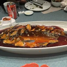 **Dining:** Breakfast was served at the Yaoyuan Cafe, just a two to three-minute walk away. Sitting by the window, enjoying breakfast while admiring the beautiful views, was wonderful. The breakfast spread wasn't extensive, not quite up to five-star standards, but it was decent. We also had dinner once at the Peony Hall. Every dish we ordered was excellent, especially the West Lake vinegar fish, which surprisingly had a flavor reminiscent of crab – absolutely delicious!