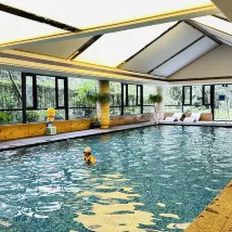 The hotel's pool water is crystal clear, and the changing rooms are spotless! There weren't many people, it almost felt like we had the place to ourselves! 👍