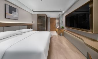 酒店是曼居的風格裝修,很新,沒有啥味道,洗澡水很大,很舒適。前台很專業,服務很好。早餐很乾凈很好吃。門口停車位不算多,不過有四個慢充樁,充電的車位很寬敞,點贊。
