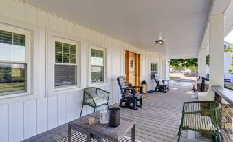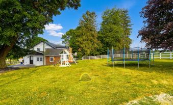 Begin your day by savoring the serene ambiance of the front porch; swaying on the porch swing, enjoying your morning coffee, and embracing the invigorating freshness of the country air. Indulge in a delightful meal on the patio with fresh eggs from our resident chickens. Enjoy the 60 acres of open rolling hills which offers walking, hiking & biking. Sit by the firepit near the pond for a beautiful sunset & lively conversation. There is a barn to host parties & a playground to entertain the children.About pets:No pets allowed, service animals permitted.About checkOut:Check out before 10:00 AM.About children:Children allowed: ages 0-17.About checkIn:Check in after 4:00 PM.About smoking:Smoking is not permitted.About minBookingAge:Minimum age to rent: 21.About events:No events allowed.