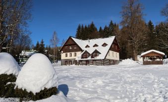 Very beautiful apartment house 700 m a.s.l., 3 storeys. 12 apartments in the residence. 400 m from the centre of Harrachov, on the outskirts, 28 km from the centre of Jablonec nad Nisou, 12 km from the centre of Rokytnice nad Jizerou, in a sunny position, 50 m from the edge of the forest, 1.3 km from the skiing area. For shared use: property, meadow. In the house: storage room for skis. Parking (limited number of spaces) on the premises. Shop 100 m, supermarket 400 m, bus stop "Harrachov, centrum" 600 m, railway station "Harrachov-Mýtiny" 3 km, outdoor swimming pool 400 m, indoor swimming pool 100 m. Golf course (18 hole) 39 km, ski lift 300 m, chair lift 1.3 km, slopes 300 m, ski rental 1.3 km, ski school 1.3 km, children's ski school 1.3 km, children's playground 300 m. Nearby attractions: Mumlava vodopád 2.5 km, Kořenov 8 km, Jizerka 15 km, Jablonec nad Nisou 29 km, Jablonec nad Nisou 40 km, Termy Cieplickie(Pl) 30 km. Well-known ski regions can easily be reached: Harrachov 1.3 km, Příchovice 10 km, Rokytnice nad Jizerou 15 km. Hiking paths: Western City Karpacz(Pl) 40 km, Park miniatury Kowary44km,Karpacz (Pl) 39 km, Giganteria Piechowice(Pl) 23 km. "Harrachovka", 2-room apartment 33 m2, on the ground floor. Practical and cosy furnishings: living/sleeping room with 1 double sofabed, dining table, satellite TV and radio. 1 room with 2 beds. Kitchenette (2 hot plates, toaster, kettle, microwave, electric coffee machine). Shower/WC. Gas heating. Please note: suitable for families. Non-smoking house. Maximum 1 pet/ dog allowed.