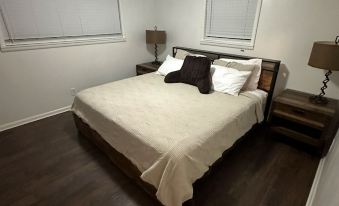 The house was spotless when we walked in. There were all of the amenities of home and then some. At many other rentals, it was only stocked with the bare minimum and cooking was a joke without having to buy things to bake in, etc. Not here! There were plenty of kitchen appliances and pots and pans, even some paper plates and some pantry items. It was stocked with our favorite 7Brew coffee, even! The house had a spacious floor plan, the owner was VERY responsive to communications, etc. It was in a quiet little neighborhood right in the middle of town with close access to pretty much anything you needed! Every day that we were there we discovered another little treasure in this drawer or that. If we have to return to Harrison, we will definitely stay here again. Oh, and she allowed us a super early check-in because of extenuating circumstances. Five stars!