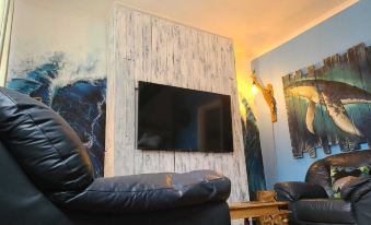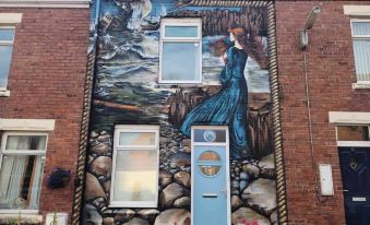 The house features Urban art murals throughout, well equipped kitchen, 58 inch smart TV and bathroom with bath and mixer shower. Free on street parking with plenty of space. To the rear is a yarden (a gravelled yard garden) with sheltered seating area.