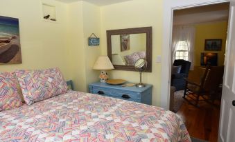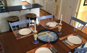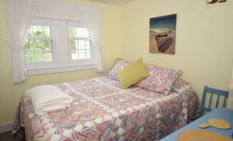 This is the best-equipped cottage rental you will ever have. Full kitchen with modern appliances that don’t look like they belong in the Smithsonian, plenty of china and glassware, roomy enclosed sun room, bed linens and towels, everything you need. Country lane location not far from grocery and restaurants.