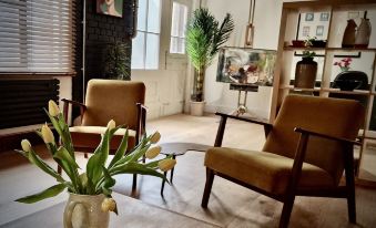 Full of original features, large metal beams, vintage Erco lighting, oak flooring, 20th Century Modern furniture and accessories. Two king size double bedrooms. Fully equipped architect designed open kitchen and stylish bathroom with drencher shower.About pets:Pets allowed: dogs less than 20 lbs per pet (limit one pet total).About checkOut:Check out before 11:00 AM.About children:Children allowed: ages 0-17.About checkIn:Check in after 4:00 PM.About smoking:Smoking is not permitted.About minBookingAge:Minimum age to rent: 21.About events:No events allowed.