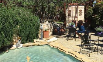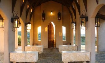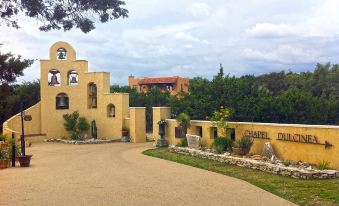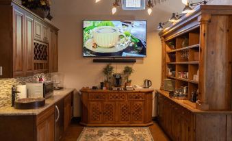 A kitchenette complete with wine glasses, plates, eating utensils, etc. BUT... this is NOT a kitchen for cooking. The good news is you are a very short drive from Austin's famous Salt Lick Barbecue and several other places that offer inside dining and outstanding carry-out.About pets:No pets allowed.About checkOut:Check out before 11:00 AM.About children:Adults only.Lo.About checkIn:Check in after 1:00 PM.About smoking:Smoking is not permitted.About minBookingAge:Minimum age to rent: 21.About events:No events allowed.