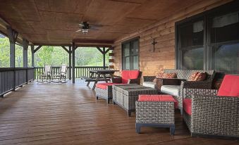 If the inside space isn't enough, move on out to the 4,000+ sq. feet of covered porch. With breathtaking views of Crabtree Bald, hot tub, tons of rocking chairs, tables, games, etc., you may not want to go back inside! Start a camp fire at the large fire pit and let the stories begin. If the chairs are not already around the fire pit, they should be stacked underneath the porch just to the side of it.