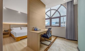 About a 15-minute drive from Hefei Xinqiao International Airport, the hotel offers free airport transfers, self-service breakfast, and self-service laundry services. Each room features new bed linens, high-definition projection screens, high-speed free Wi-Fi, 24-hour hot water, and disposable toiletries. It also includes a small conference room and a gym, with affordable prices, making it suitable for travelers in transit and for business trips.