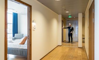 This hotel is located less than 2.5 kilometers from the city center, 1 kilometer from the West Harbor, 700 meters from Ruoholahti metro station and next to Crusellinsilta tram stop. I walked from the central railway station to the hotel. It took 30-40 minutes. There are very beautiful walking areas near the hotel, too. I especially recommend nearby parks, especially Saukonpaadenpuisto and Hyväntoivonpuisto.