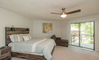 access and plenty of games (corn hole, washers, board games), you and your family will have just as much fun inside as you do out on the water. The main house has two large bedrooms, and the property also has a separate guest house with a bedroom, bathroom and kitchenette with a mini fridge for your convenience.
