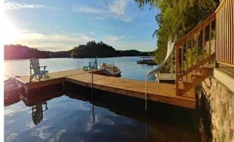 The cottage is a lovely two-story home overlooking Paudash Lake. Here, you will find four bedrooms and two full bathrooms to accommodate a large family or mature group of eight guests. The views are spectacular from inside the home and from the main deck through its glass panels, which overlooks the lake. The south-west exposure allows for beautiful sunny days enjoyed by the dock and gorgeous sunsets in the evenings.