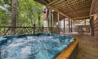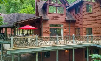 Escape to our stunning mountain retreat that effortlessly combines the tranquility of nature with modern luxuries. This extraordinary property features a charming mountain home, offering an enchanting space for your vacation getaway. Nestled within the embrace of nature, you'll relish the sounds of Laurel Branch and its soothing waterfall from the expansive porches that provide a haven of privacy. The main house boasts an expansive layout with 4 bedrooms and 4.5 baths.
