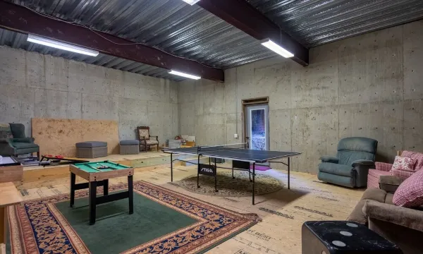 For families, the home has a bunk room that comfortably accommodates six children (with a weight limit of 95 pounds). A wifi-free kids' lounge brims with entertainment options, including ping pong, corn hole, foosball, mini pool, cornhole, magnetic darts, and board games. Smaller thrill-seekers can also enjoy a zip line adventure.
