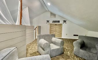 The former mother-in-law suite is now a spacious pirate-themed suite complete with stairs to a pirate ship loft (a really cool crow's nest!) where the kids can hang out and watch TV, play games, and claim their own space. This suite also has a full bath and kitchenette and two sets of twin over full bunk beds just perfect for 6. You don't have to even be a kid to enjoy this unique space!