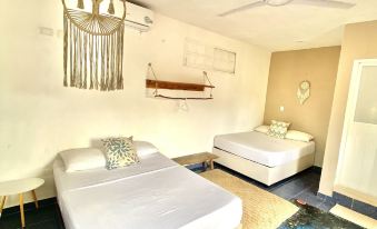 Centrally located with proximity to the beach and dining options. Comfortable rooms with AC and quiet insulation. Spacious dorm room with cozy beds. Varied breakfast, but inconsistent fruit freshness. Friendly and relaxed staff.