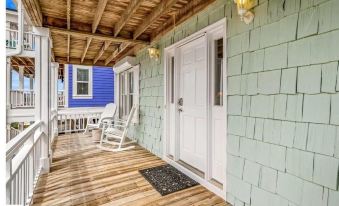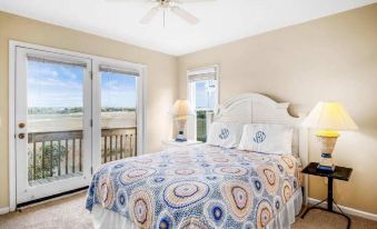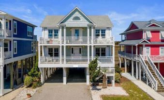 Panoramic Views: Ocean, Marsh & Intercoastal Waterway Await You. 2nd Row in Holden Beach. Enjoy spectacular summer sunsets over the marsh from the back decks. Inverted floor plan allows for the most incredible panoramic breathtaking views of the OCEAN out the front and the MARSH and INTERCOASTAL waterway in the rear. Watch the boats, deer and wildlife! 4-bedrooms w 2 masters (sleeps 12), 3 1/2 baths & 4 decks with ocean, marsh and inter-coastal waterway views from inside and all the decks! Easy PRIVATE deeded beach access is less than a 2 minute walk away. Inverted floorplan allows for the best views. Upper level is full of windows to show off the panoramic views which makes it full of light to show off the beautiful marsh, waterway, ocean views and summer sunsets off the back decks. Large open concept family room has a smart TV and is open to a large Farm style dining table. A half bath is available off the living room. Well appointed Kitchen features Marsh views. Keurig and a standard coffee pot are both available. Upper level features two decks to experience the ocean or the marsh / intercoastal views. This house has two Master Suites. One Master Suite is on the upper level featuring a large master bedroom with ocean views and a queen bed and a completely remodeled private bathroom. Refresh in the luxurious master bath that features a new tile shower with dual shower heads and a soft feel pebble tile floor. Dual vanity and granite counters. Downstairs has a second family room / den with a TV and three bedrooms. The Second Master Suite has Marsh views that opens to a deck with a king bed and a remodeled private bathroom. The luxurious master bath features a large walk in shower and granite counters. The third bedroom has a queen bed and opens to the deck and features spectacular marsh views. Fourth bedroom features a full size bunk with a twin on top and a triple twin bunk bed and is attached to the 3rd full bathroom that also opens to the hallway. The 3rd bathroom has been completely remodeled and features a tub and tile shower. Exterior amenities include rocking chairs, an outdoor shower area (mid April-October) with hot/cold water to rinse off after a day at the beach. Please note that there are cameras on the exterior of the house. There are no cameras inside the house. Linens and Bath Towels are provided at no extra charge. Ceiling fans in all rooms as well. Parking for up to 6 cars with 2 covered parking spots.About pets:No pets allowed.About checkOut:Check out before 10:00 AM.About children:Children allowed: ages 0-17.About customRules:If the beach is closed due to Covid-19, we will refund you for your stay. If you are mid-stay and the beach is closed for Covid-19, we will refund you.About checkIn:Check in after 4:00 PM.About smoking:Smoking is not permitted.About minBookingAge:Minimum age to rent: 24.About events:No events allowed.