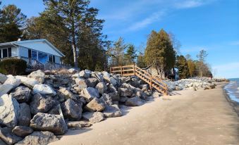 Beautiful Cottage nestled on the WI shore of Lake Michigan. We have the best view of the water from inside the house and out! The deck is perfect for relaxing, enjoying a meal or morning coffee to the sound of the waves. A bedroom, living room and full bath on each level make it convenient when traveling with another couple or family.