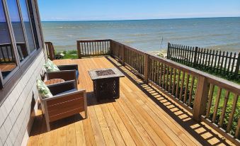 The view of Lake Michigan at this house is spectacular... definitely 5 stars for the views and beach access! Cassie was great to work with and very quick to respond to any questions we had. A couple of minor upgrades and we'd consider this to be a 5- star property. The deck is fantastic, but is not gated to keep children and pets secure. Installing gates would give parents/pawrents peace of mind and make relaxing on the deck much easier. Additionally, we'd recommend installing treads on the deck stairs leading into the house. I only have vision in one eye and found it difficult to discern one step from the next because the stairs and deck visually seem to all blend together. I fell a couple of times and my husband who is not sight challenged, also nearly fell a couple of times. Otherwise, a nice home with fantastic views, incredibly peaceful, close to great restaurants and activities in Sheboygan. Thank you Cassie for hosting us !!