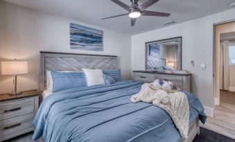 We are so excited to introduce our newly redesigned villa. Solace West has been thoughtfully designed with ample opportunities for you to recover. From the colors, to the linens, to the decor our goal was to provide you a place where comfort and style lend toward rest and recovery. This inviting space offers you the opportunity to unwind, whether relaxing with a movie on the couch, enjoying an afternoon siesta in the hammock while feeling the cool of the afternoon breeze, relaxing those tired muscles with a long soak in the hot tub or walking across the way and enjoying some time in the sand. At night the outdoors are beautifully lit to let you keep enjoying the space. Whether using the lit hot tub with its waterfall feature, or sitting by the fire and enjoying the night sky. Our outdoor space also features a beautiful outdoor shower where you can rinse all the sand before getting ready for your next adventure. We believe this space is perfect.