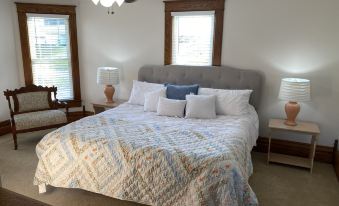 The Owl Room has an attached bath with a double sink and a tub style shower. There is a closet laundry room with a full-sized washer and dryer.