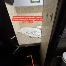 It was a terrible experience. The comforter and sheets were extremely dirty. The shower was broken, with no hot water. There were no disposable toothbrushes, shower gel, shampoo, or even toilet paper.