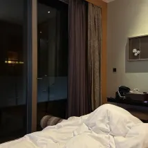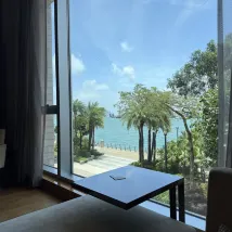 I arrived at the hotel around 1 PM that afternoon, but the room wasn't ready yet, so I went out to grab some food. When I returned closer to 3 PM, the room still wasn't prepared, and I ended up falling asleep in the lobby while waiting. Perhaps because of this delay, the hotel upgraded me to a sea view room. The room layout was quite surprising; it was remarkably similar to a hotel I stayed at in Beijing called Fengye Garden (枫烨园), making me even wonder if it was designed by the same person. I usually don't take photos in hotel rooms, but plenty of photos are available in the review section. In the evening, this view was lovely – lying on the sofa, having a drink, it was very relaxing.