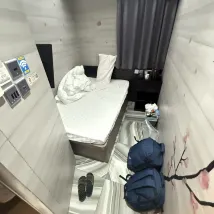 Guesthouse is tucked in a little corner at level 23 of the building. The escalator also serves a club(?) at level 6 and 7. The unit was cut into several smaller rooms, and it was small (as expected) and clean. They provide shampoo and body wash. As a female solo traveller it was a bit intimidating going up and down the lift (was harassed by a drunk in the lift on the first night 🥲) and walking down the cigarette smoke-smelling corridor. Walls were thin and I could hear the other guest crying(???). The building probably was also shared by other residential tenants.