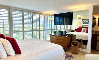 Located AT THE TOP of the Diamond Head Beach Hotel, this penthouse STUDIO has panoramic views of Diamond Head to the east and Waikiki to the west, including ocean, mountain and park views. Some guests have likened it to a crows nest due to the outstanding views.