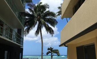 Older building, studio was small but well appointed. Views were good, but no private outside space. No access to beach without walking out on the street. Found 2 restaurants within 1/2 mile. One in a fairly pricey hotel. The other was basically a fast food restaurant. If you think you will walk to all waikiki has to offer, think again. My wife and I walk a mile and a half per day, up and down hills. In the heat and humidity, we rarely walked more than 1/2 mile. You need a car. As far as the owner, great communication, but when we decided to leave after the first night, due to the isolation of the property, we inquired about a partial refund. We had rented for 10 nights. All we were hoping was that a token refund would be issued for the very limited use of the property, so little to no wear and tear, and virtually no use of the utilities. The owner would not issue any refund. I realize I had no legal standing to expect a refund, but a few hundred dollars refunded would have been a nice gesture. So, we are unhappy that we concentrated on the owner's beautiful pictures of the view from the studio, and did not research more thoroughly. No pool, limited outside space to relax and "hang" out, few restaurants/bars within walking distance, access to the beach and ocean are along a fairly busy street, and a studio apartment that is about the size of a hotel room, i.e. the "kitchen" contains a microwave, and a coffee maker. We were expecting more.
