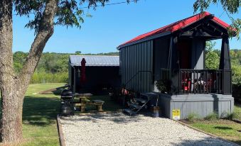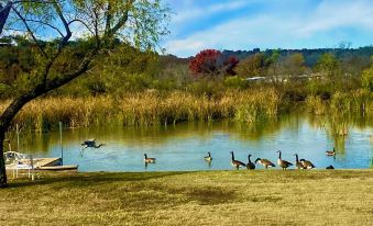 Enjoy your stay in this fully equipped tiny house cabin on the lake, with the Brazos River across the street. A wonderful tiny house featured on the DIY Network’s: “Texas Flip N Move.” Go fishing in the lake from the backyard dock, or launch a boat into the river at the boat ramp up the street. Roast marshmallows around the fire pit, cook burgers on the gas grill, have a picnic at your outdoor picnic table. Later, enjoy a glass of wine at sunset on the covered porch or on the shaded rockers by the dock. Located just 9.5 miles from the beautiful Granbury town square.