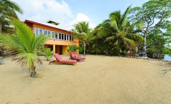 PRIVATE BEACH - There are steps going directly into the Caribbean from the Private Beach for you to wade or swim in. There are very comfortable chaise lounges for you to enjoy relaxing on the sandy beach or move them under the home for shade. There is also a Jungle Lot next to the beach offering a view of the local wildlife including Agoutis, Iguanas, Coatimundis and many species of vibrant Belizean birds.