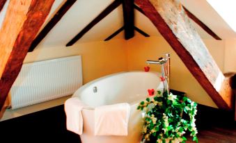 Took a family trip, stayed here for a few days. It's a smaller hotel but provides a more intimate feel. We got a larger room to sleep three people. A large soaker tub out in the open (not for anyone who is shy!). 2 minute walk from a bus stop and about 12 min ride down to the main area/train station. The breakfast was amazing! Delicious and plentiful!. One unfortunate thing was the room we were in had a sloping ceiling that came down low and I smacked my head off the stucco twice, left a scrape on my head...also found it a bit weird that there was a small sliver of glass that allowed someone on the bed to see the person showering, and nothing the person showering can do to prevent it except fog it up. Other than that, great, quaint, and unique hotel, very much enjoyed our stay.