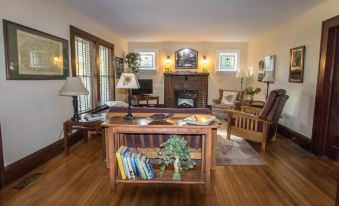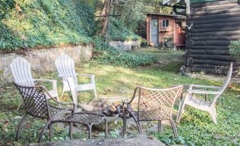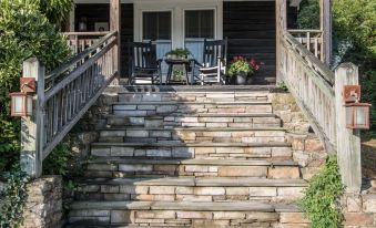 The Chestnut Log Cabin is an absolute treasure hand crafted from the rare American Chestnut Trees of yesteryear.  The interior is beautifully restored to its original 1922 Arts and Crafts style creating an inviting, soothing mountain get away.  This two bedroom, fully equipped cabin includes a private outdoor hot tub, relaxing fire pit and large covered, rocking chair front porch. Secured wi-fi, smart TV for streaming & dvd player.  Original hardwood floors throughout the cabin and relaxing sunroom looking out on private back garden.  It is located directly on the Appalachian Trail within walking distance to town and all of the Hot Springs attractions.  The living room and sunroom offer additional sleeping areas with comfy futon sleepers.