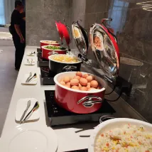 We booked five rooms and had a very pleasant stay. The amenities at Home Inn are excellent. The hotel is very clean and well maintained. There's a gym and laundry room, which is very convenient for washing and drying clothes. You can even check the washing machine and dryer times on the TV so you can pick up your clothes when they're due, which is very convenient. The breakfast was very good and delicious. Highly recommended!