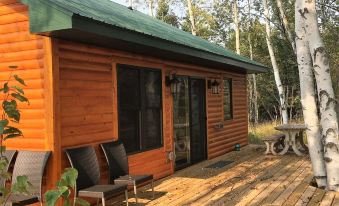 Sitting on the property of Northwinds Adventures, a year round camp, the “Walleye" cabin features 2 bedrooms; one with a Queen bed (linens provided) and another with a two twin bunks (linens provided). For additional sleeping space, there is a reclining couch in the living room or space for a cot. 50" Streaming TV only! Pack and Play available upon request - $10. White Oak hardwood floors throughout cabin, bathroom is tiled with a standup shower. A wood burning stove is available to take the chill off in the cooler seasons, firewood provided for $8/bundle. The kitchen is full with everything you need to prepare a great meal after a day outdoors.