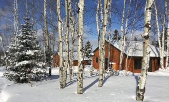 The cabin is tucked in a grove of aspens about 100 yards from our very own private Love Lake. There is a deck for lounging and a fire pit in the yard. There is also a charcoal grill; but the charcoal is not provided.