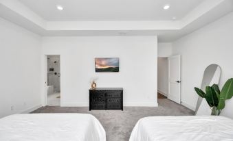This gorgeous getaway accommodates 8 guests with bedrooms. The master bedroom features 2Queen beds and an ensuite private bathroom with a large tub and stand-up shower.