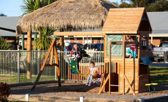 A High standard of accommodation with appealing decor, a small kitchenette & parking at the door. Friendly helpful staff & the room was clean & comfortable. The bathroom had a hot shower & luxurious thick towels. A comfortable bed with electric blanket was appreciated on a colder night. Everything was in good repair. We were warm and toasty inside despite cold weather outside. There was a pool and BBQ area which we didn't use due to the weather. Internet worked well. Its a short 50m walk to the Golf club where you can have dinner and possibly serves lunch as well. We stayed two nights to visit friends in the town but ate at the club both nights.